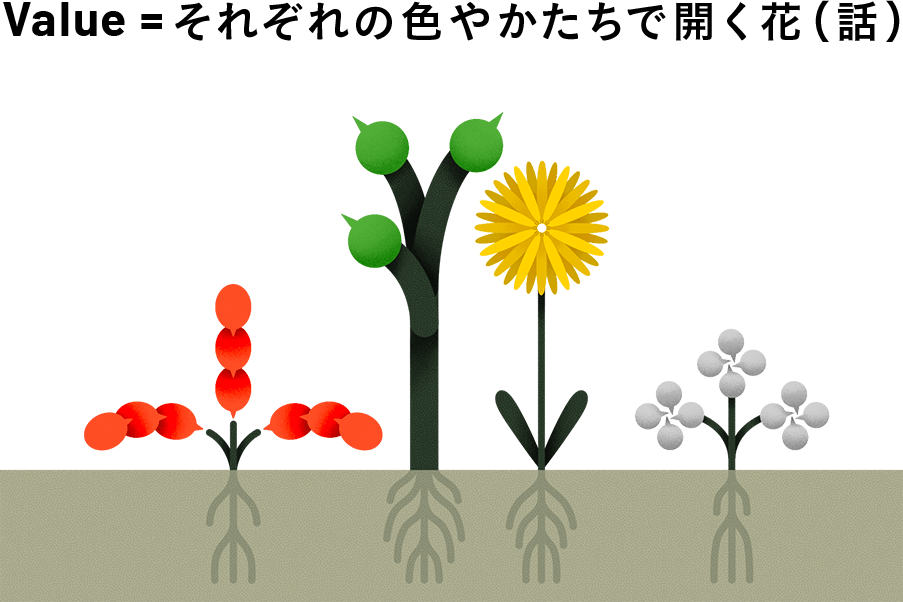 Value =それぞれの色やかたちで開く花(話)