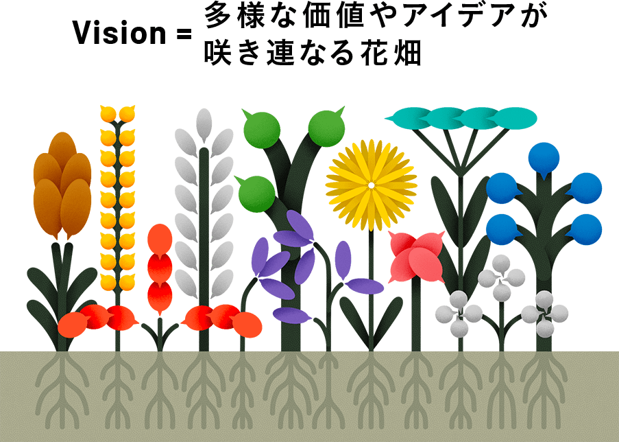 Vision =多様な価値やアイデアが咲き連なる花畑